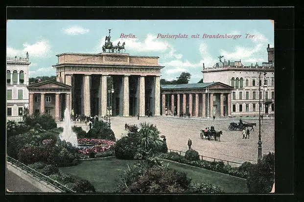 AK Berlin, Pariserplatz mit Brandenburger Tor und Springbrunnen