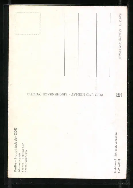 Personenbezogene Daten auf der Rückseite der Karte wurden durch blauen Textmarker unkenntlich gemacht. Die blauen Stellen sind auf die Vorderseite durchgeweicht und wirken sich negativ auf das Postkartenfoto aus