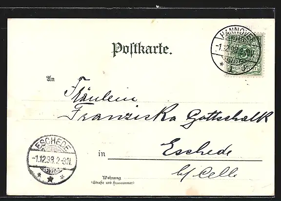 alte Ansichtskarte, gelaufen 1898, guter Zustand