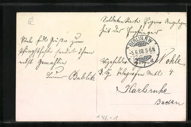 alte Ansichtskarte, gelaufen als Feldpost 1908, guter Zustand
