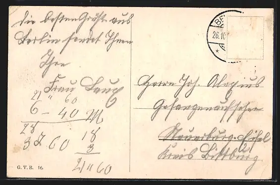 alte Ansichtskarte, gelaufen, Briefmarke entfernt, Eckknick oben re., guter Zustand