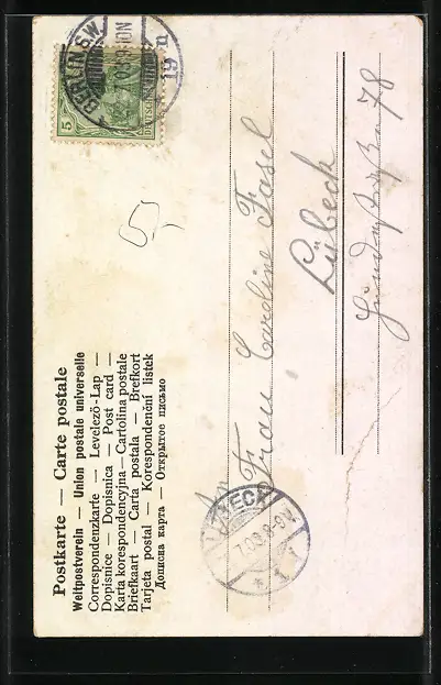 alte Ansichtskarte, gelaufen 1903, Bugspur li. unten, Stempelspur, guter Zustand