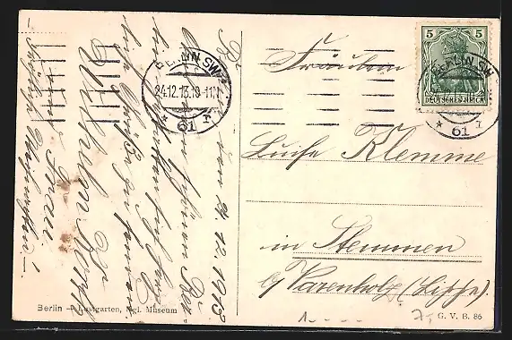 alte Ansichtskarte, gelaufen 1913, Stempelspur, guter Zustand
