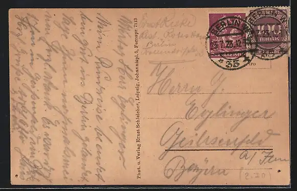 gelaufen 1923, Stecknadellöcher unten re. und li., guter Zustand