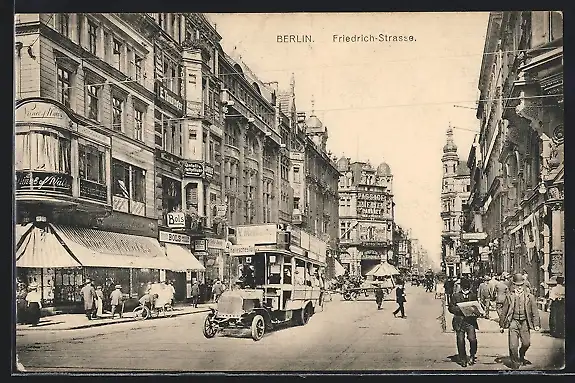 AK Berlin, Partie in der Friedrichstrasse mit Geschäften