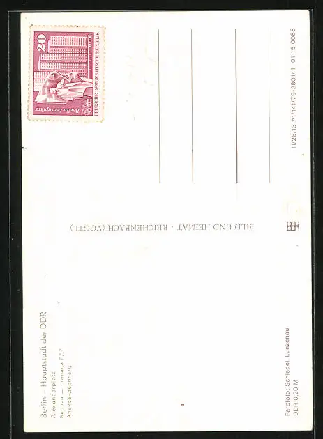 Personenbezogene Daten auf der Rückseite der Karte wurden durch blauen Textmarker unkenntlich gemacht. Die blauen Stellen sind auf die Vorderseite durchgeweicht und wirken sich negativ auf das Postkartenfoto aus