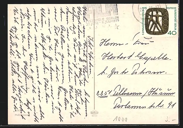 Personenbezogene Daten auf der Rückseite der Karte wurden durch blauen Textmarker unkenntlich gemacht. Die blauen Stellen sind auf die Vorderseite durchgeweicht und wirken sich negativ auf das Postkartenfoto aus