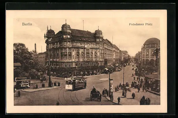 AK Berlin, Potsdamer Platz mit Strassenbahn
