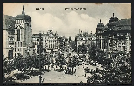 AK Berlin, Potsdamer Platz mit Strassenbahnen