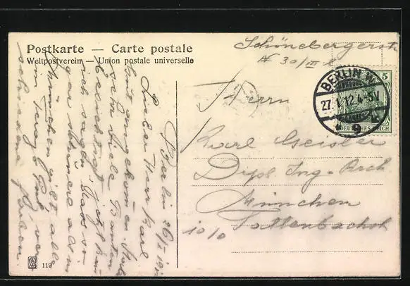 alte Ansichtskarte, gelaufen 1912, guter Zustand