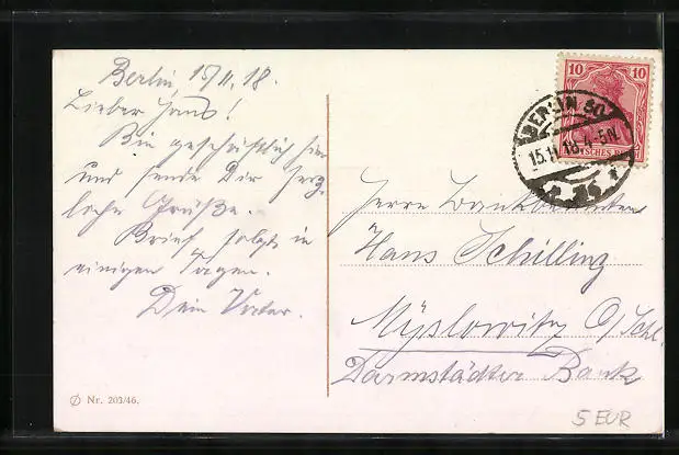alte Ansichtskarte, gelaufen 1918, Stempelspur, guter Zustand