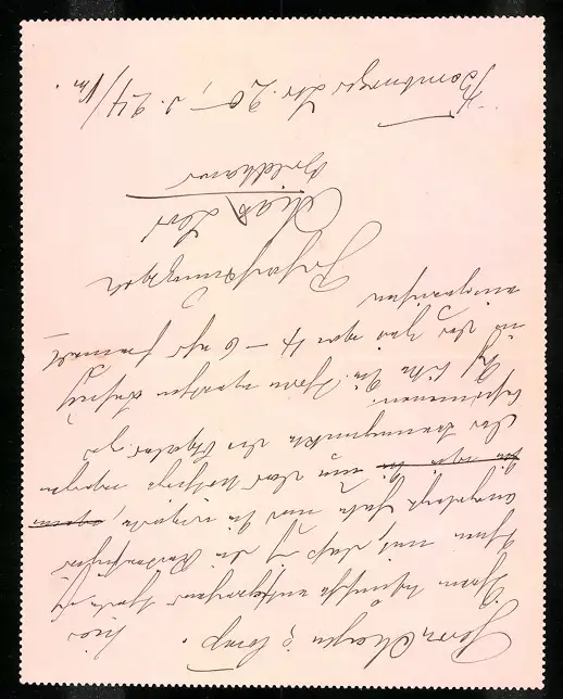 Personenbezogene Daten auf der Rückseite der Karte wurden durch blauen Textmarker unkenntlich gemacht. Die blauen Stellen sind auf die Vorderseite durchgeweicht und wirken sich negativ auf das Postkartenfoto aus