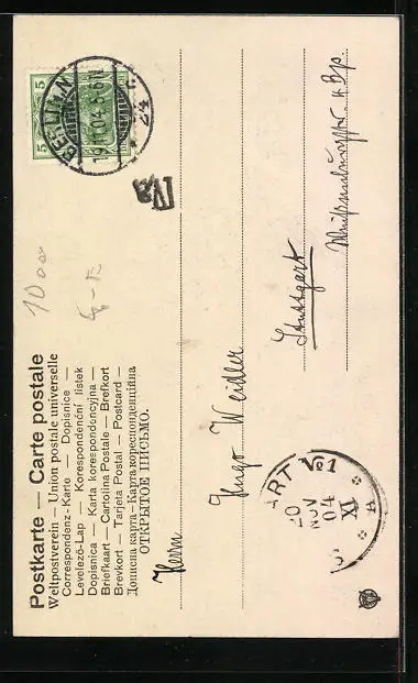 alte Ansichtskarte, gelaufen 1904, Stempelspur, guter Zustand