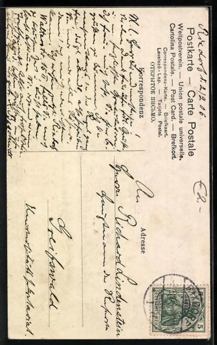 alte Ansichtskarte, gelaufen 1906, Stempelspur, guter Zustand