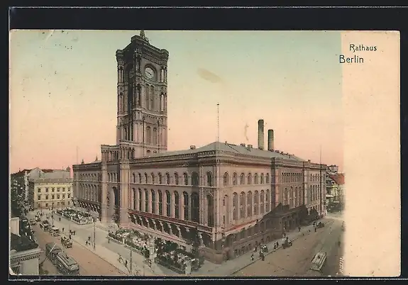 AK Berlin, Rathaus mit Strassenbahn