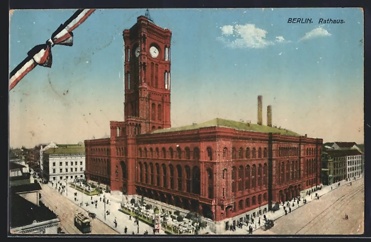 AK Berlin, Rathaus mit Strassenbahn