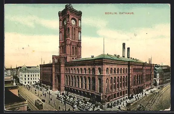 AK Berlin, Rathaus mit Strassenbahn aus der Vogelschau