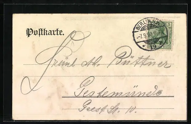 alte Ansichtskarte, gelaufen 1902, guter Zustand