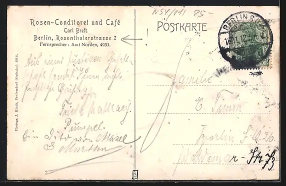AK Berlin, Rosen-Conditorei und Café, Rosenthalerstrasse 2