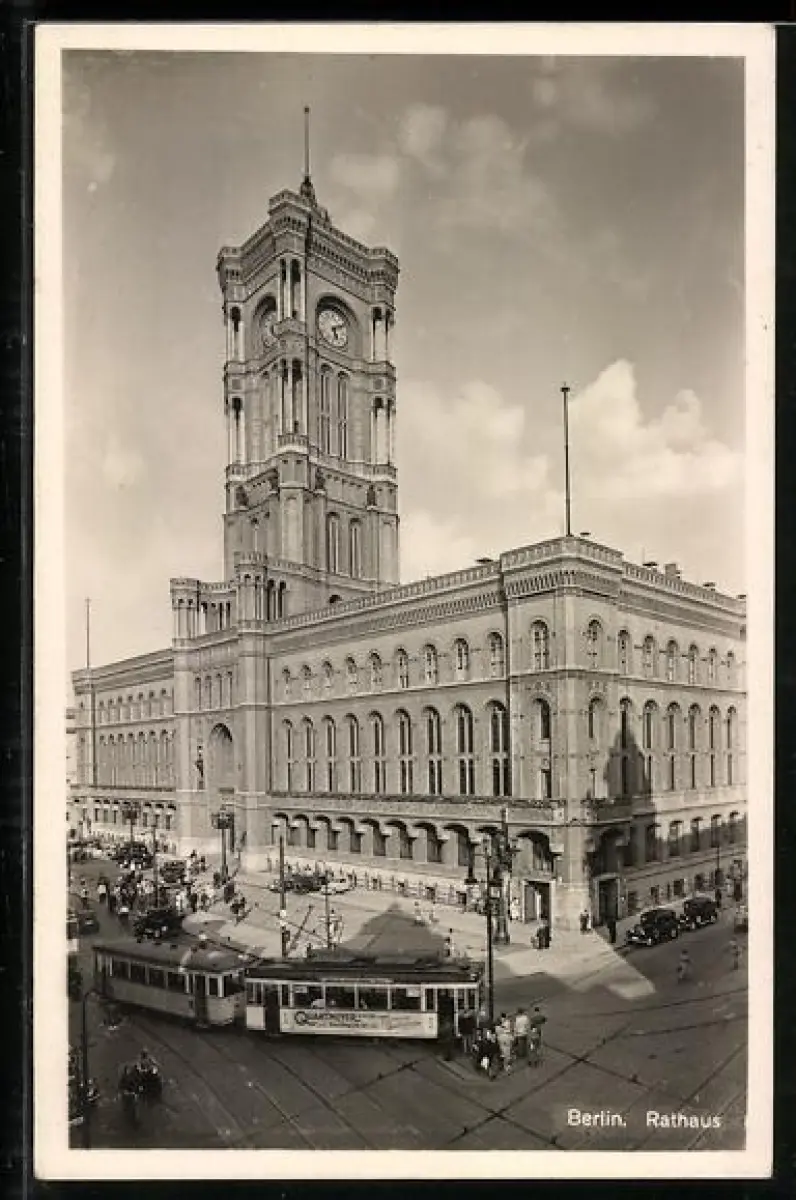 AK Berlin, Rotes Rathaus, Strassenbahn