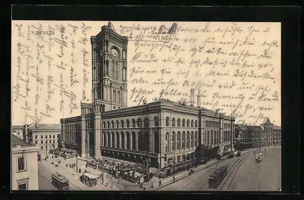 AK Berlin, Rotes Rathaus mit Strassenbahn