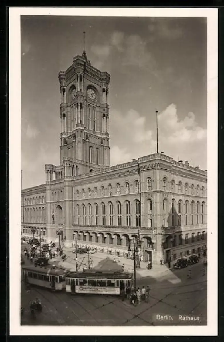 AK Berlin, Rotes Rathaus mit Strassenbahn