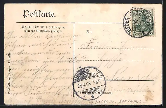 alte Ansichtskarte, gelaufen 1906, guter Zustand