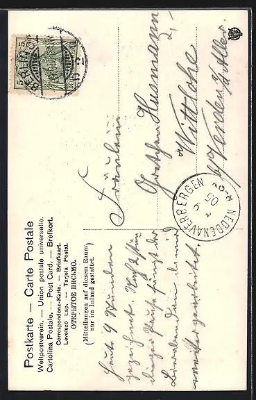 alte Ansichtskarte, gelaufen 1905, guter Zustand