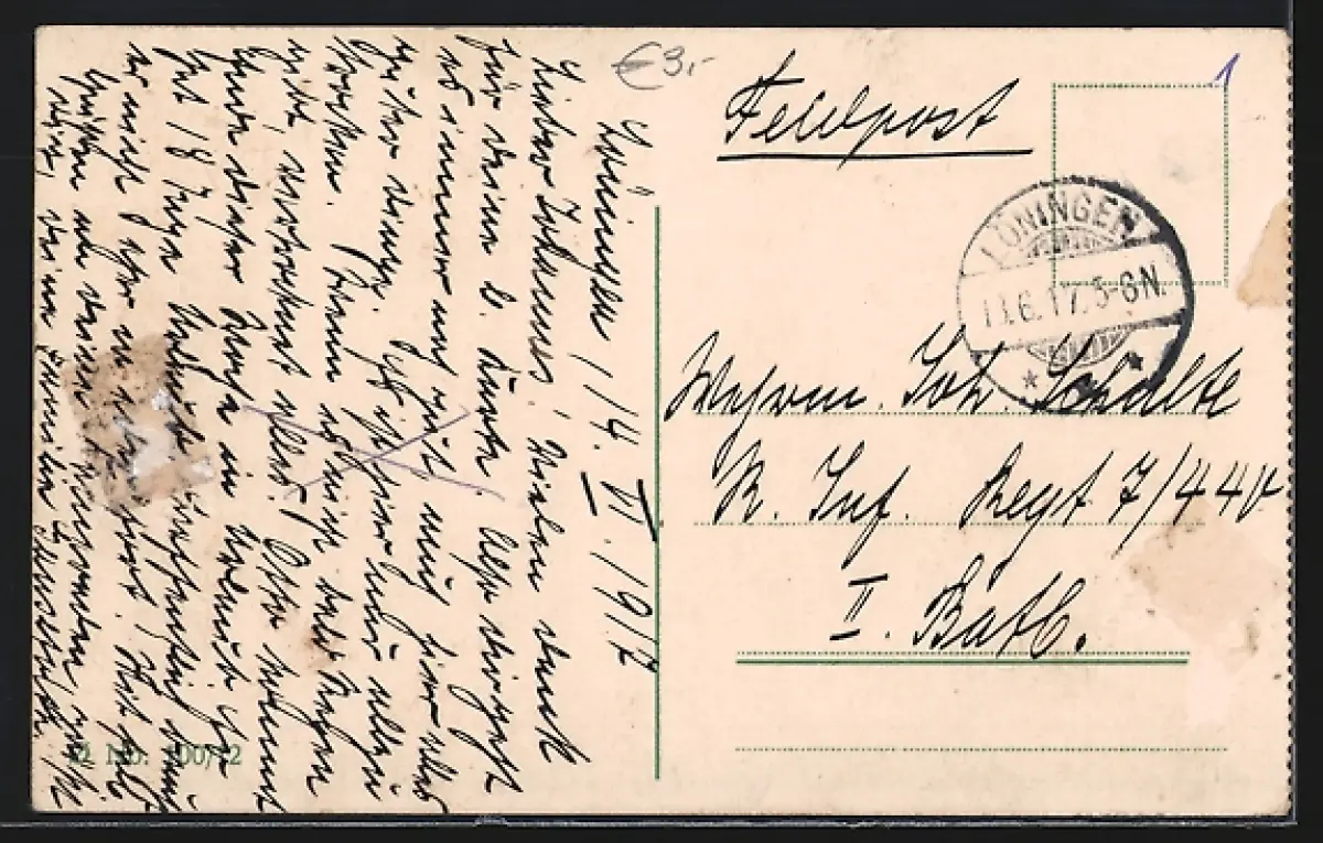 gelaufen 1917, Abriebspur unten links, guter Zustand