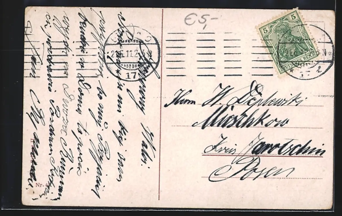 gelaufen 1911, Eckknicke oben li. u. unten re., guter Zustand