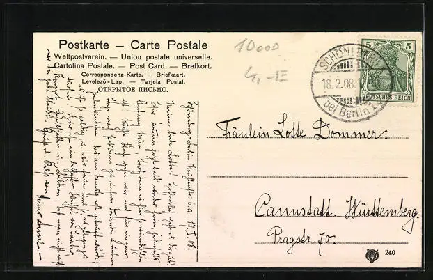 alte Ansichtskarte, gelaufen 1908, guter Zustand