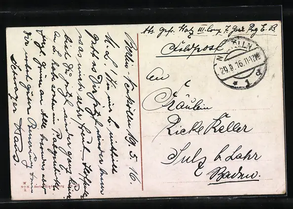 alte Ansichtskarte, gelaufen 1916, Eckknick links unten, Bugspur oben re., guter Zustand