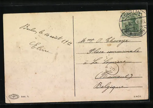 gelaufen 1912, Eckknicke re. unten u. li., guter Zustand