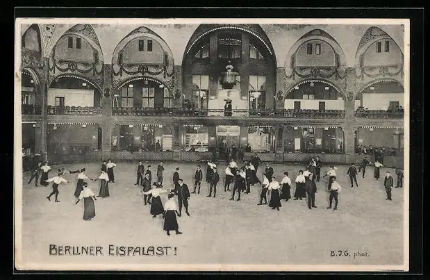 AK Berlin-Schöneberg, Eispalast, Innenansicht mit Gästen