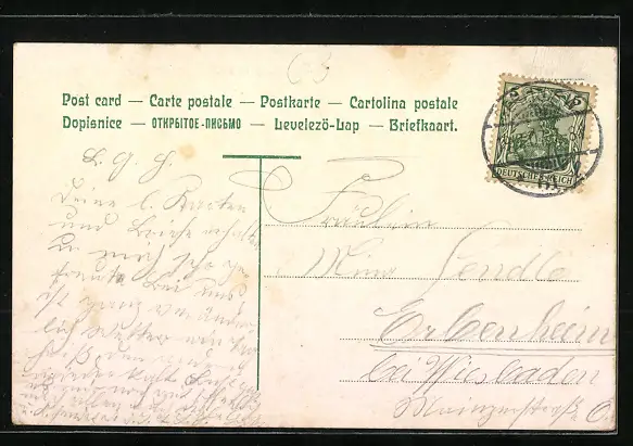 gelaufen 1907, Eckknicke re. oben und li. unten, guter Zustand