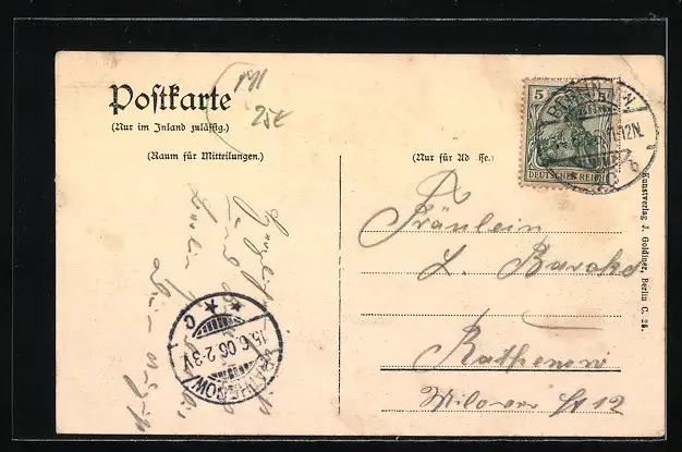 alte Ansichtskarte, gelaufen 1906, Eckknick oben links, Stempelspur, guter Zustand