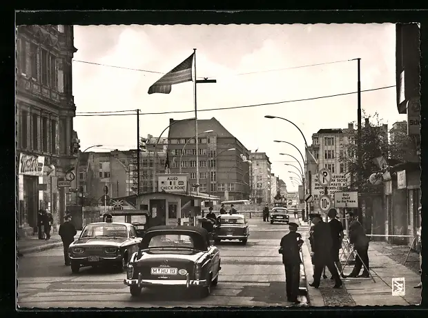 AK Berlin, Sektorengrenze, Übergang Friedrichstrasse mit Autos