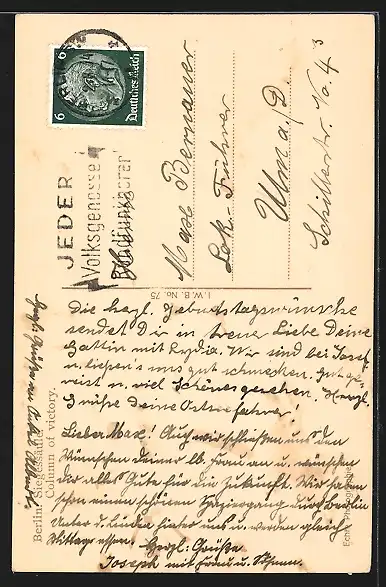 alte Ansichtskarte, gelaufen 1934, Eckknick li. unten, guter Zustand