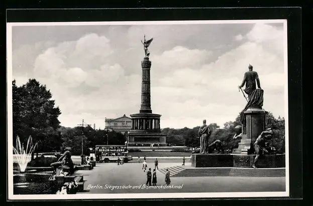 AK Berlin, Siegessäule und Bismarckdenkmal