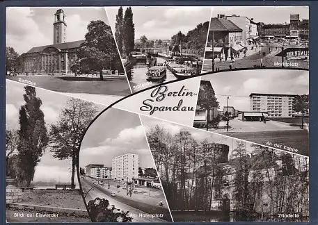 AK Berlin Spandau 7. Ansichten Rathaus - Schleuse - Marktplatz - An der Kappe - Blick auf Eiswerder - Am Hafenplatz - Zitadelle, nicht gelaufen von ca. 1960
