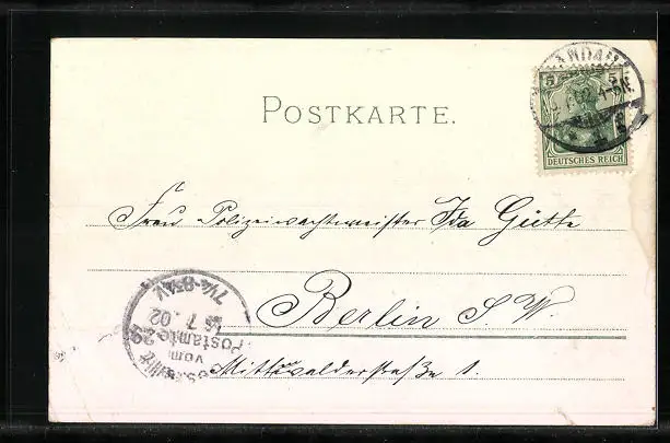 alte Ansichtskarte, gelaufen 1902, Eckknick re. unten, guter Zustand