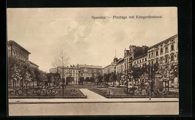AK Berlin-Spandau, Plantage mit Kriegerdenkmal