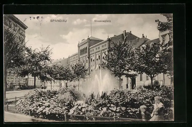 AK Berlin-Spandau, Springbrunnen auf dem Stresowplatz