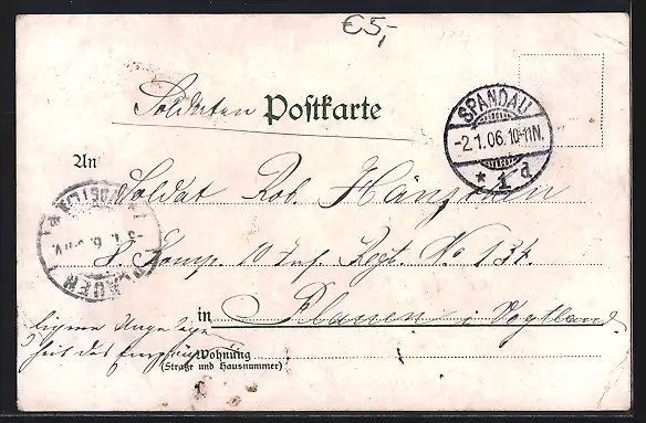 alte Ansichtskarte, gelaufen 1906, Eckknicke li., guter Zustand