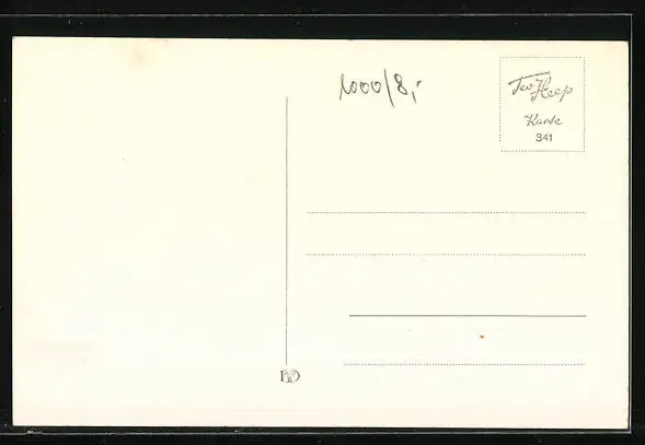 Personenbezogene Daten auf der Rückseite der Karte wurden durch blauen Textmarker unkenntlich gemacht. Die blauen Stellen sind auf die Vorderseite durchgeweicht und wirken sich negativ auf das Postkartenfoto aus