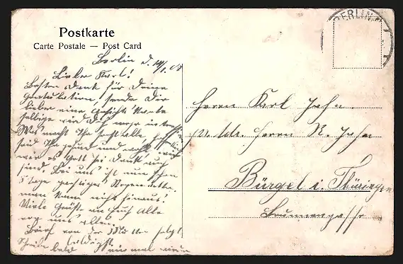 alte Ansichtskarte, gelaufen 1907, Briefmarke entfernt, Ecken bestoßen, guter Zustand