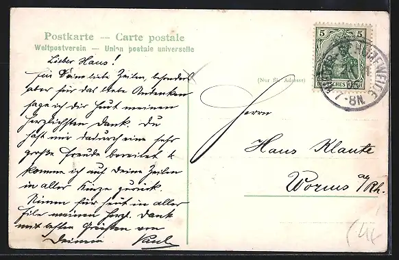 alte Ansichtskarte, gelaufen 1906, Eckknick li. oben, guter Zustand