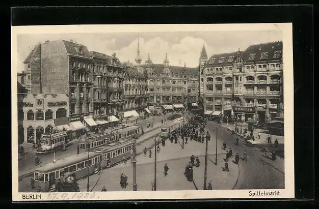 AK Berlin, Spittelmarkt mit Geschäften und Strassenbahn
