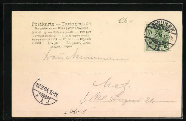 alte Ansichtskarte, gelaufen 1904, guter Zustand