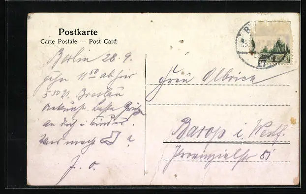 alte Ansichtskarte, gelaufen, Briefmarke entfernt, guter Zustand